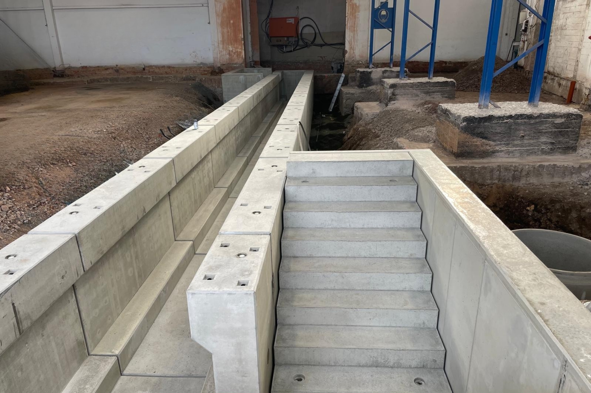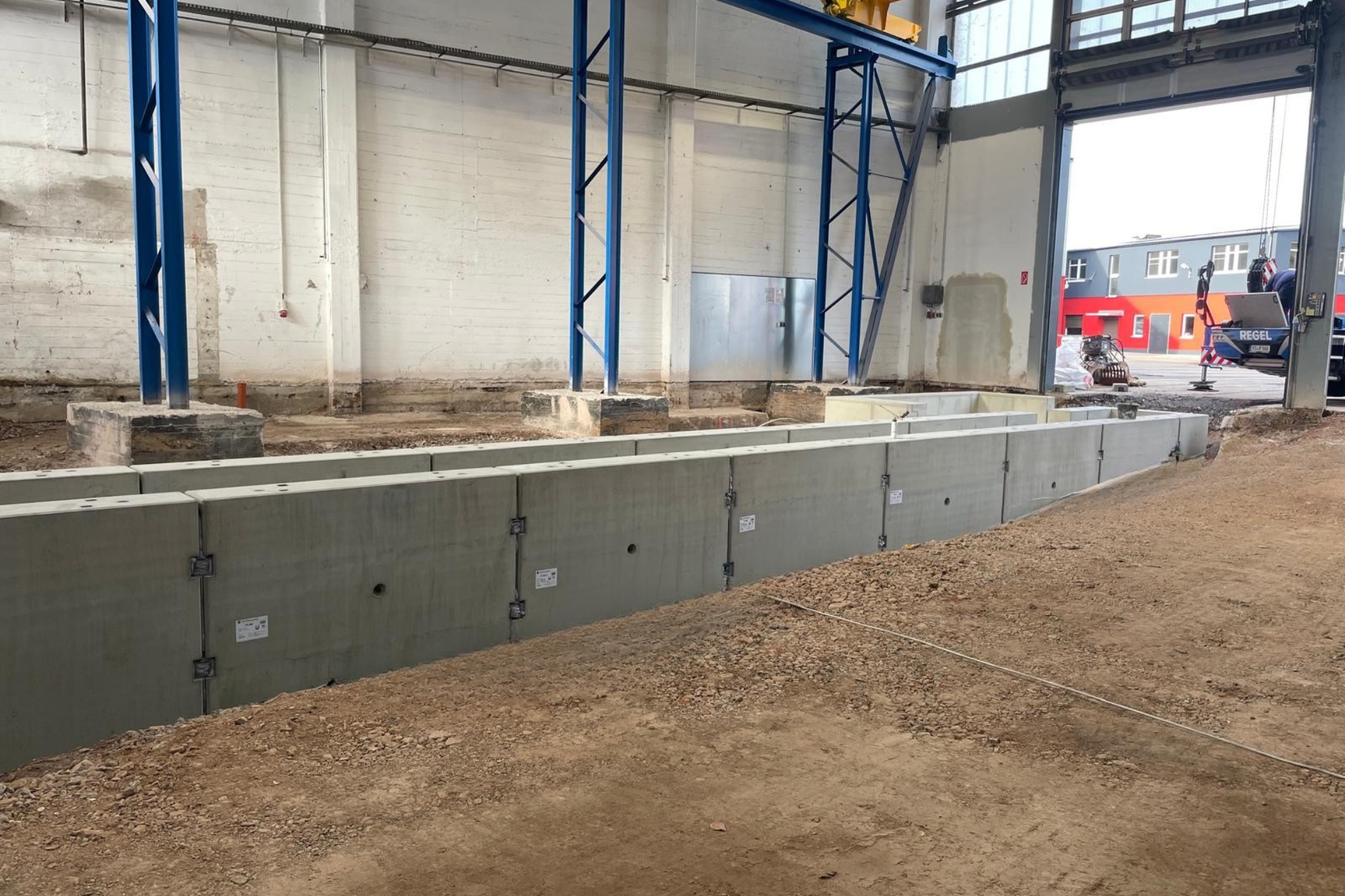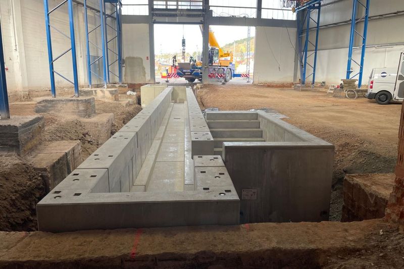 Die Arbeitsgrube hat eine Länge von 24 m und besteht aus 13 Betonfertigteilen. Sie wurde innerhalb von nur 3 Tagen montiert. Die Fugen zwischen den Elementen werden mit einem Dichtstoff verschlossen und sind somit mineralöl- und treibstoffresistent. Dies dient dem Schutz der Umwelt vor eventuell auslaufenden Betriebsstoffen.